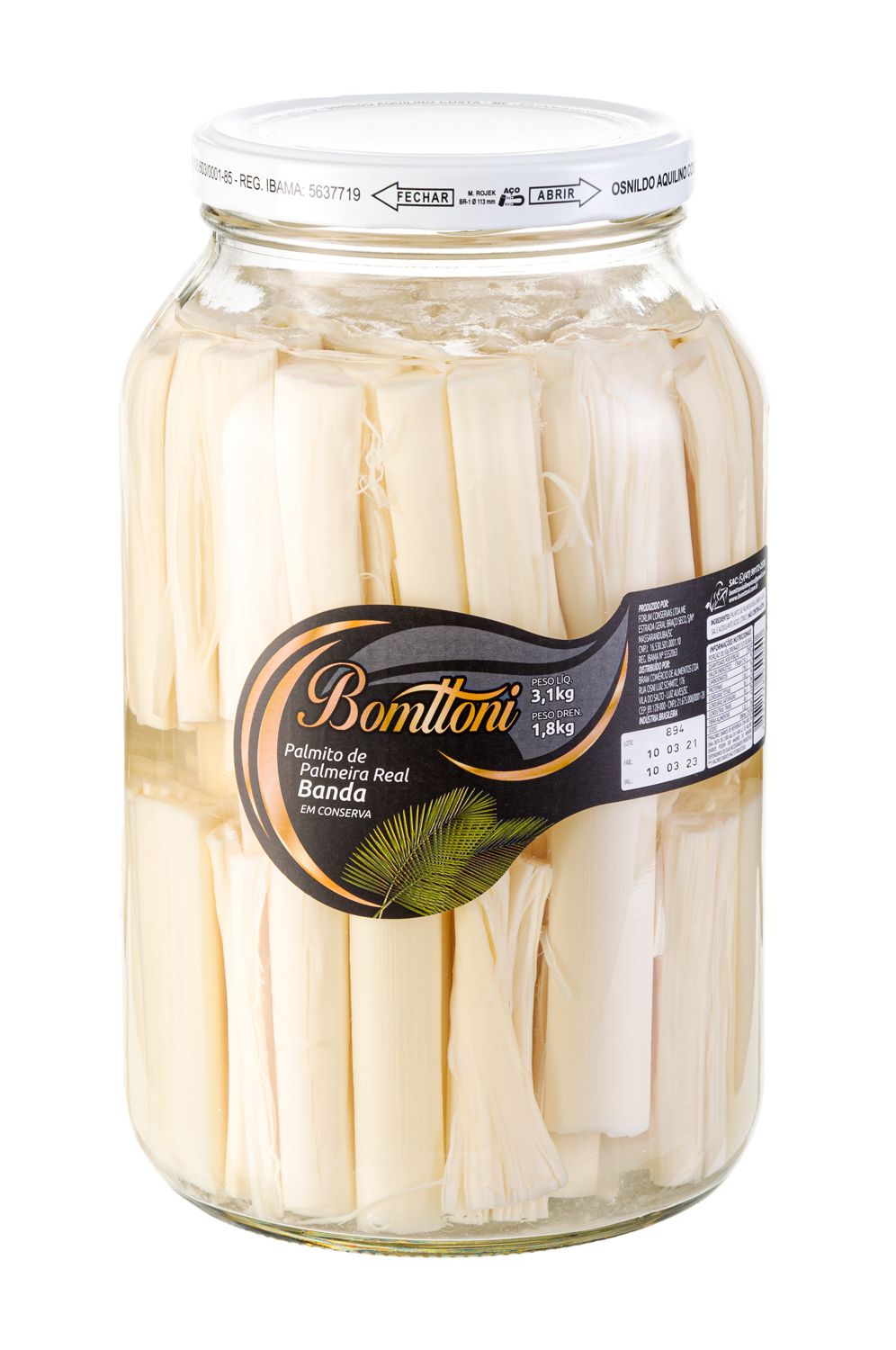Palmito Palmeira Real Banda 1,8kg - 6 Unidades
